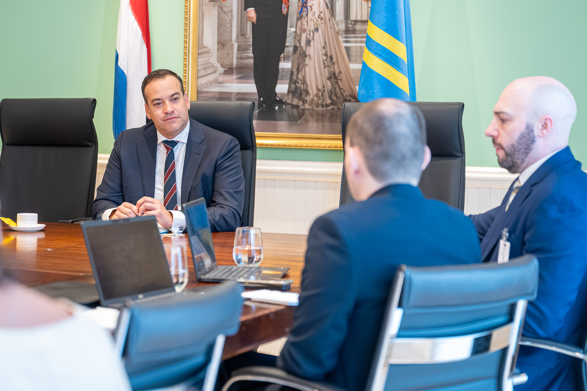 Minister di Finansa, Asunto Economico y Sector Primario, mr. Geoffrey Wever, a reuni cu un di e tres agencia principal di rating internacional: Fitch Ratings. E reunion a tuma lugar den cuadro di e evaluacion anual di rating di Aruba