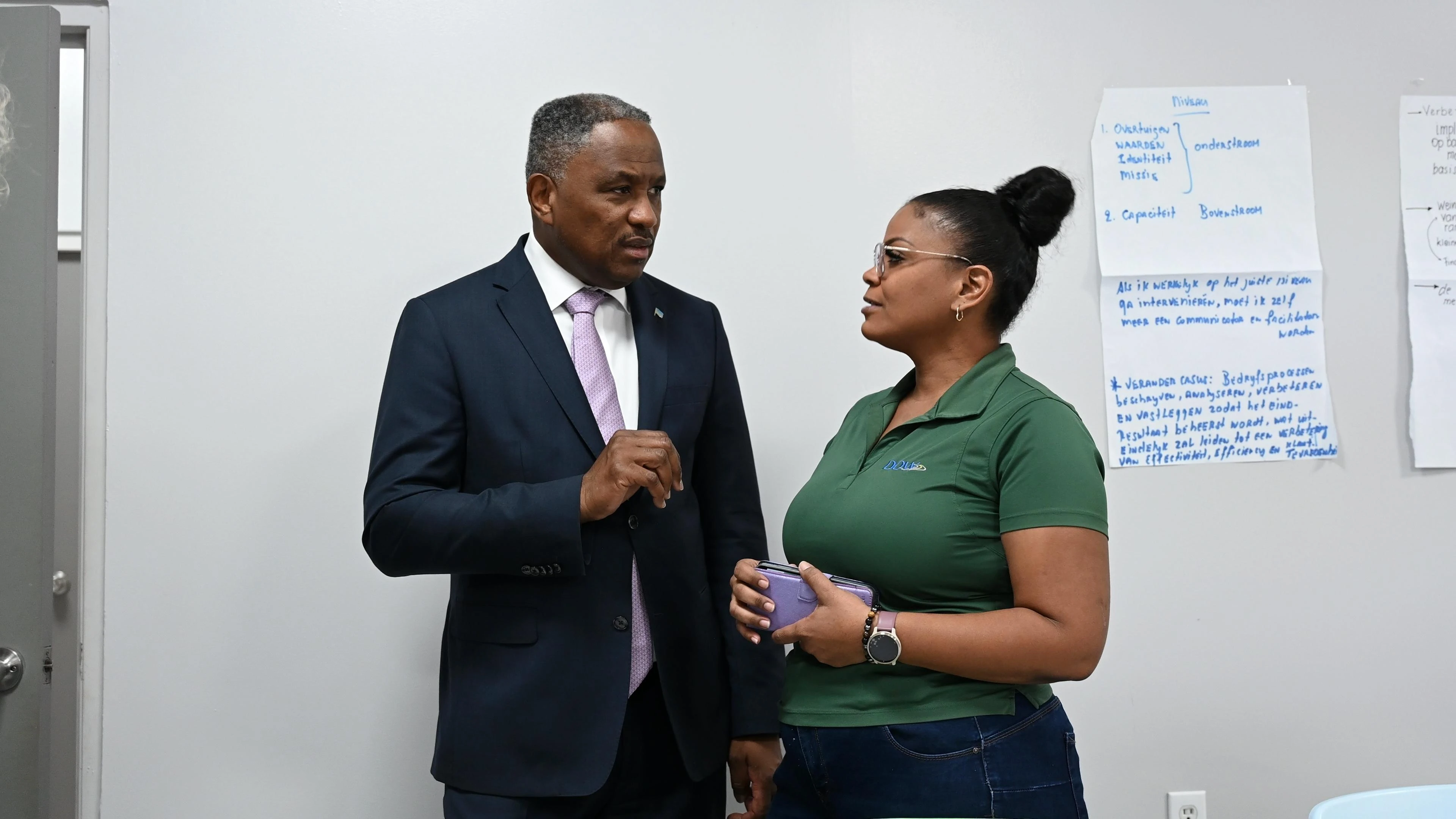 Awe mainta na Bestuurskantoor, Prome Minister Mike Eman a ricibi señor Carlos Falla, representante di Fundacion Siñami Paso pa Paso Aruba, den un bishita formal caminda a presenta un proyecto educativo enfoca riba formacion di balornan y desaroyo integral di mucha y hoben