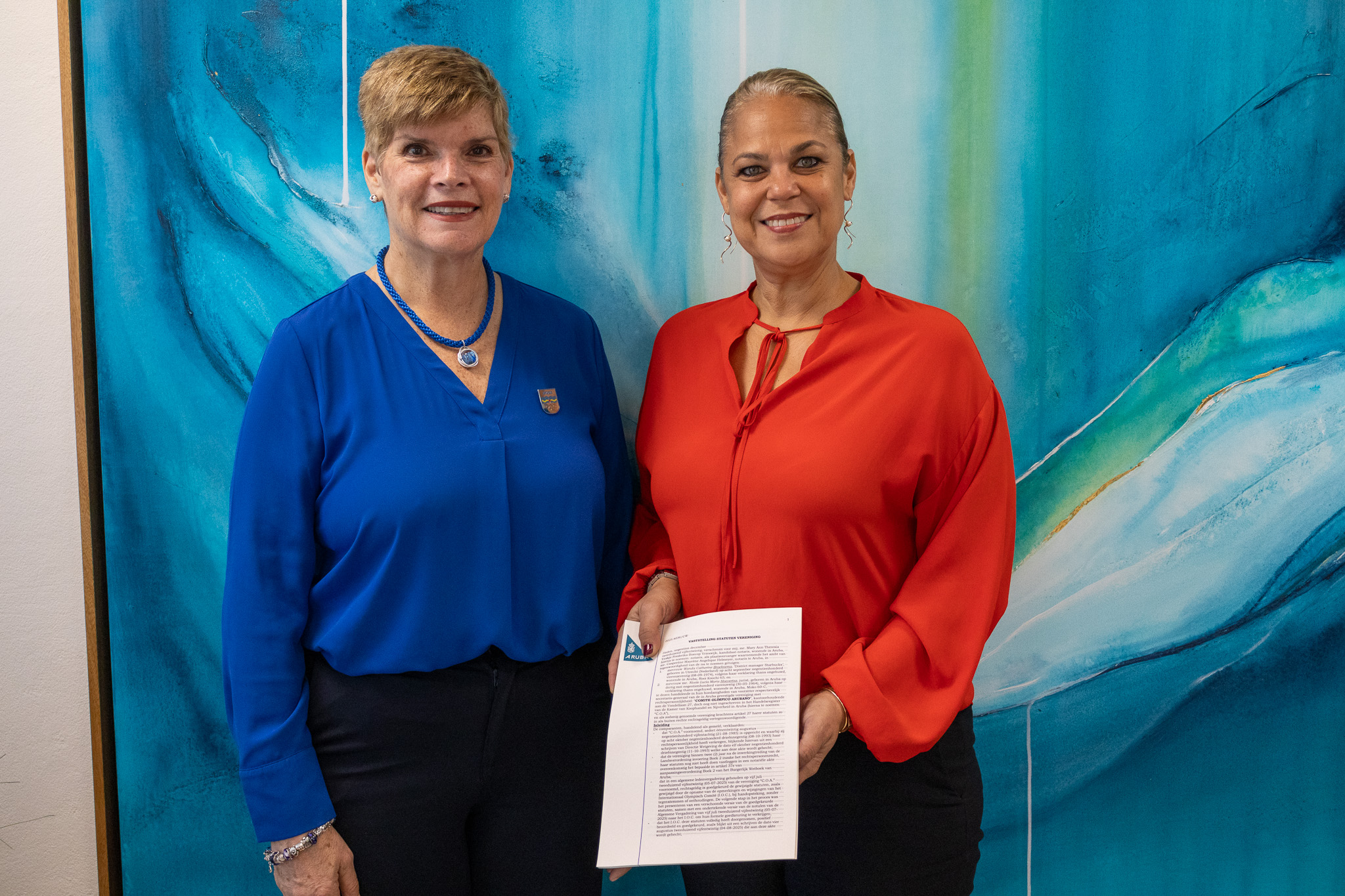 Minister di Finansa, Asunto Economico y Sector Primario, mr. Geoffrey Wever, a firma e Landsbesluit cu ta finalisa y formalisa e prestamo cu Gobierno di Aruba a coloca riba mercado di capital internacional