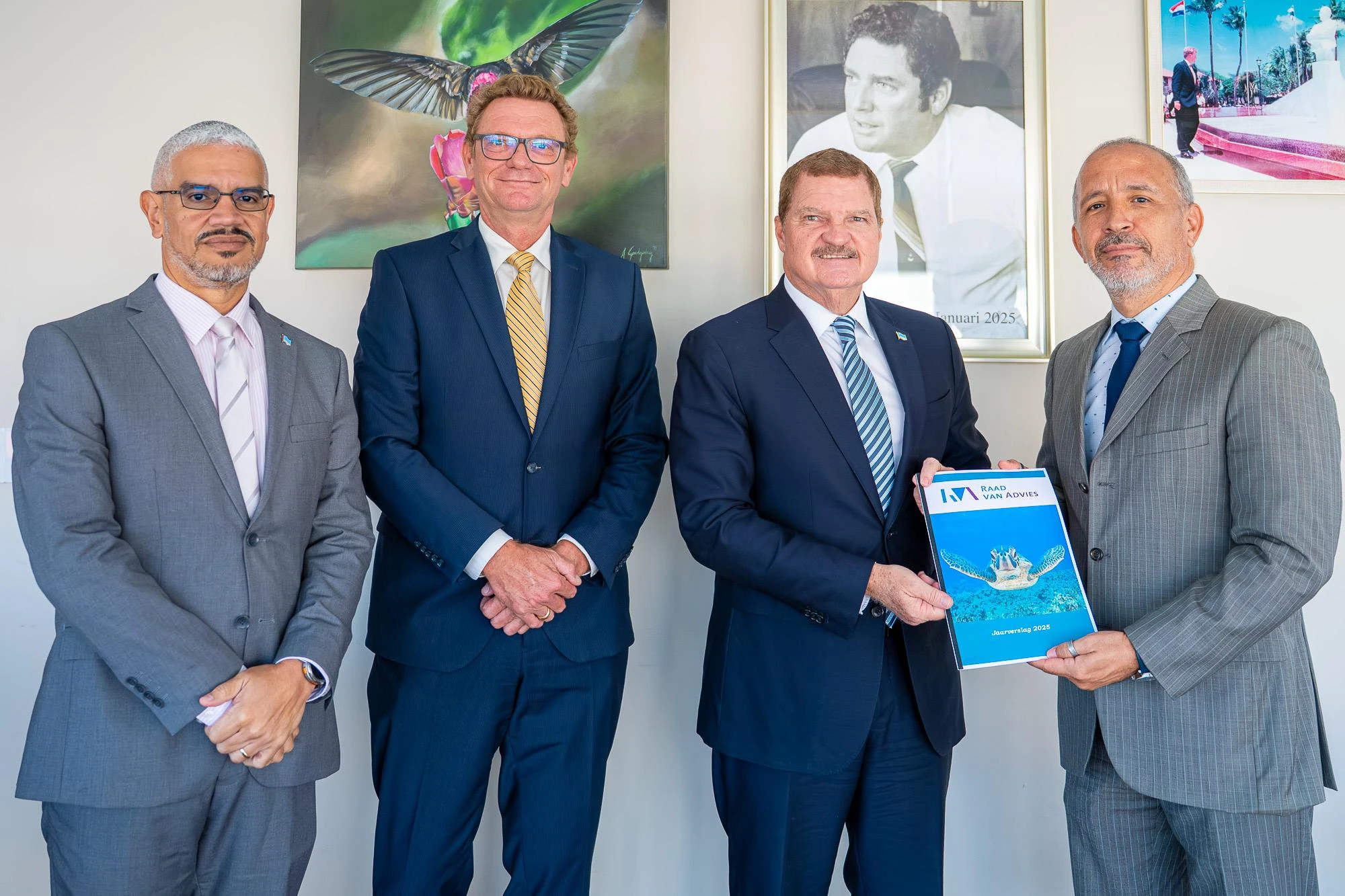 Read MoreE presidente di Raad van Advies, mr. David Kock, y e secretario, mr. Albert Braamskamp, a bishita Minister-Presidente mr. Mike Eman dia 18 di februari 2026, pa formalmente entrega e Relato Anual 2025