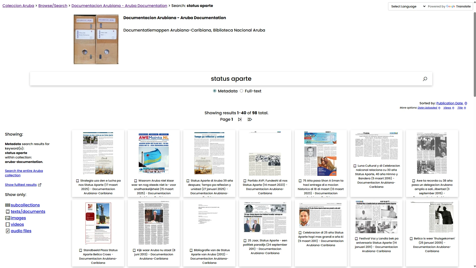 Read MoreBiblioteca Nacional Aruba (BNA) ta orguyoso di anuncia un milestone significativo: recientemente a yega na e cantidad di mas cu 100.000 item digital den e coleccion digital di Biblioteca Nacional Aruba (coleccion.aw/bna)