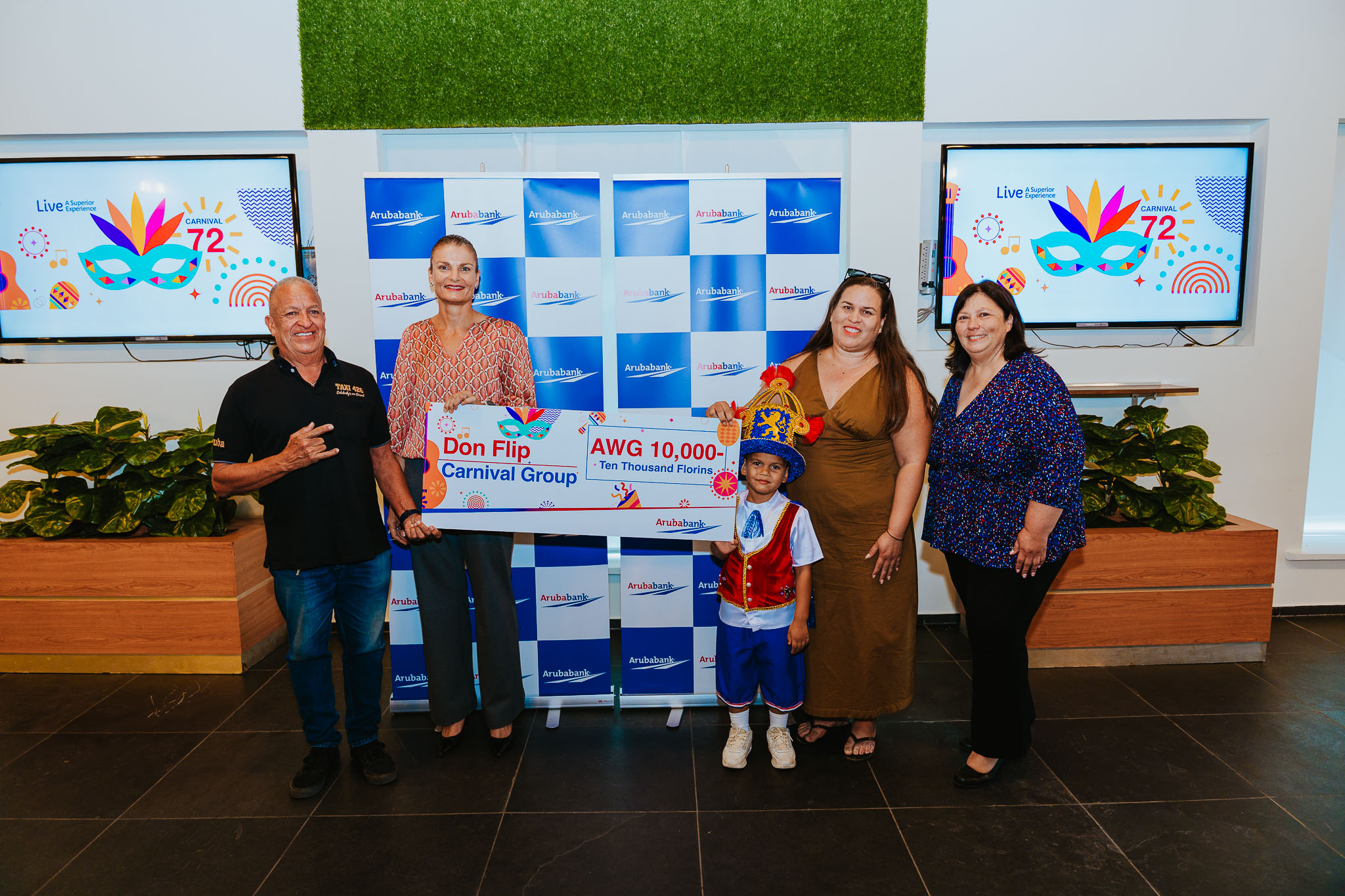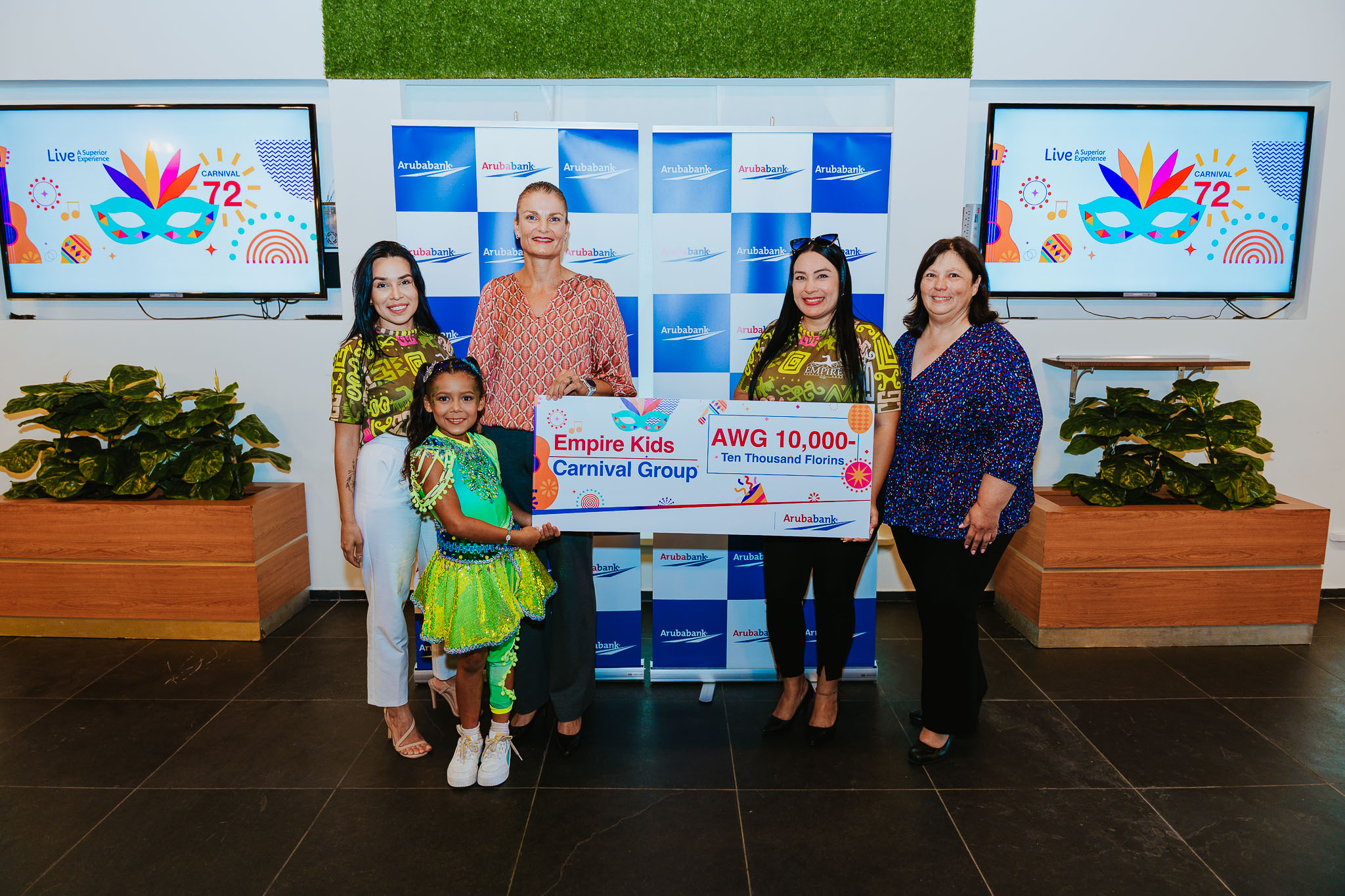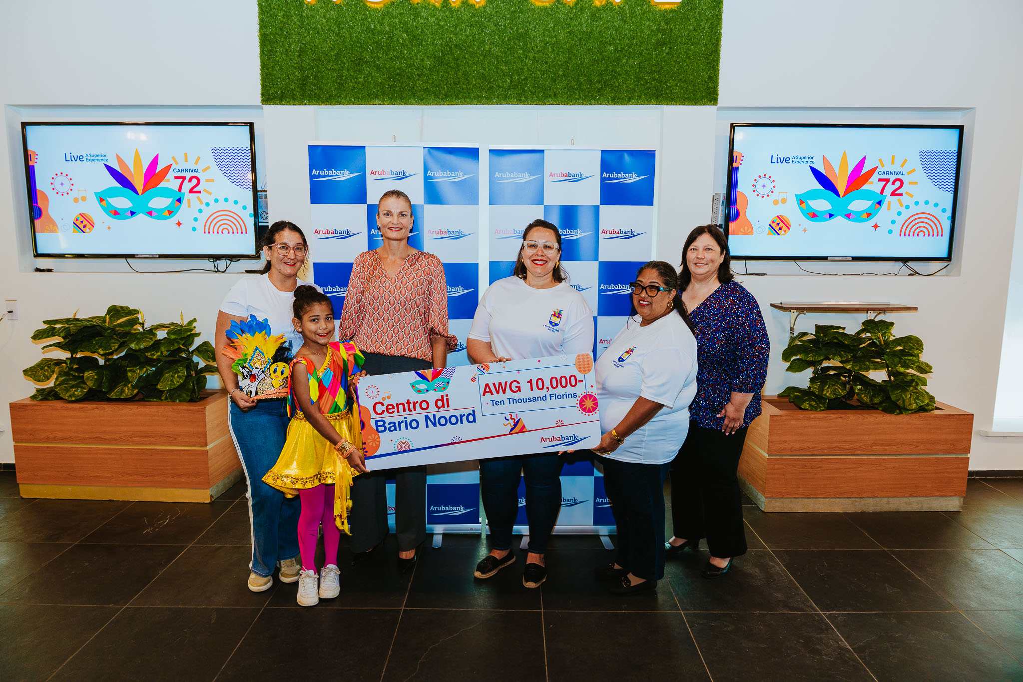 Pa sostene e esfuersonan di e grupo y pa yuda cubri parti di e gastonan relaciona cu preparacion di carnaval, Aruba Bank ta haci un donacion di AWG 10.000 na cada grupo participante. E donacion ta dirigi pa yuda cu gastonan operacional y logistico, reconociendo cu organisa un grupo di carnival ta rekeri hopi dedicacion, tempo y recurso. E grupo cu lo ricibi e apoyo financiero ta: Grupo Noord, Little Groovers, Unity Carnival Group, Don Flip, Empire Kids, Champagne Kids y TOB Kids.