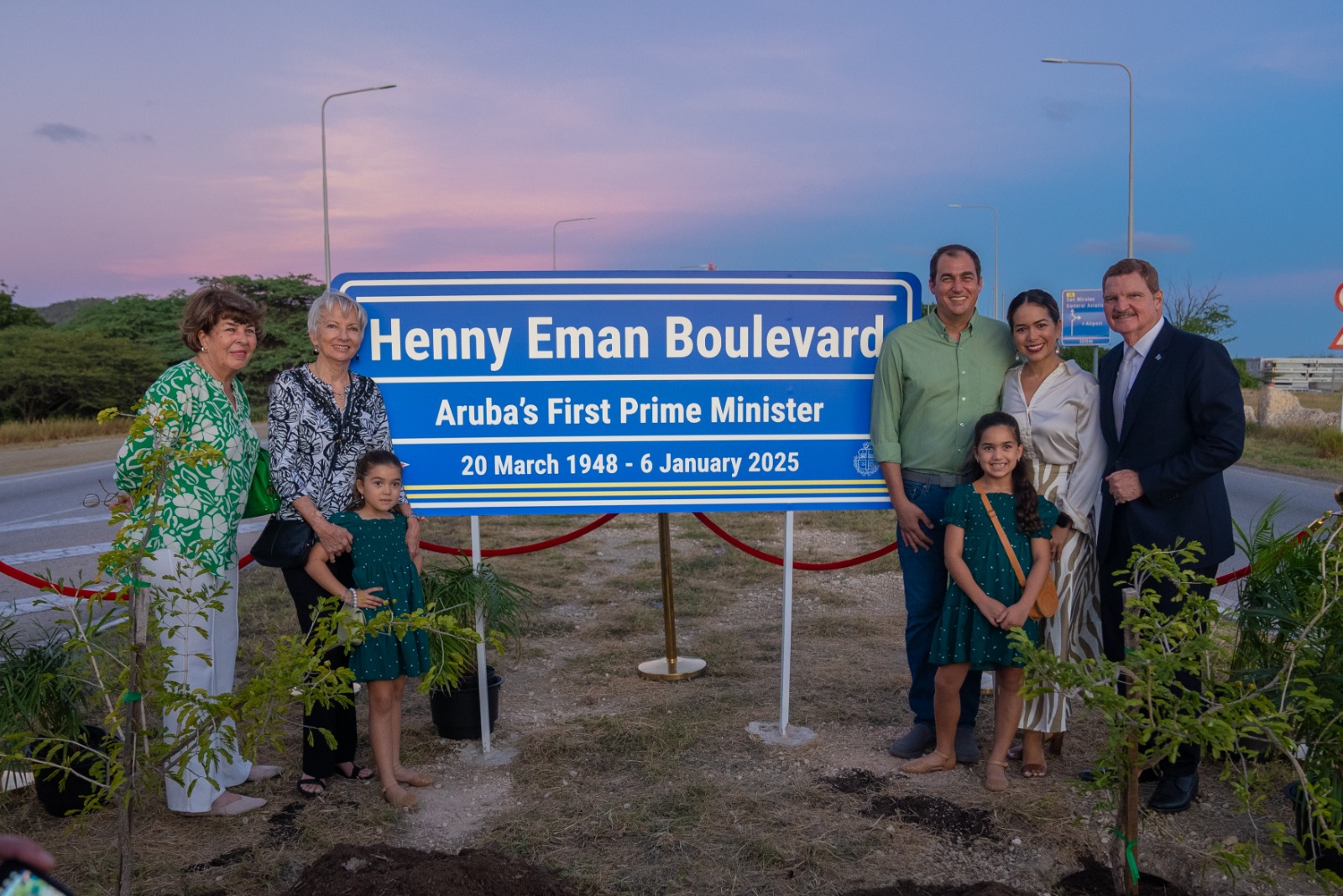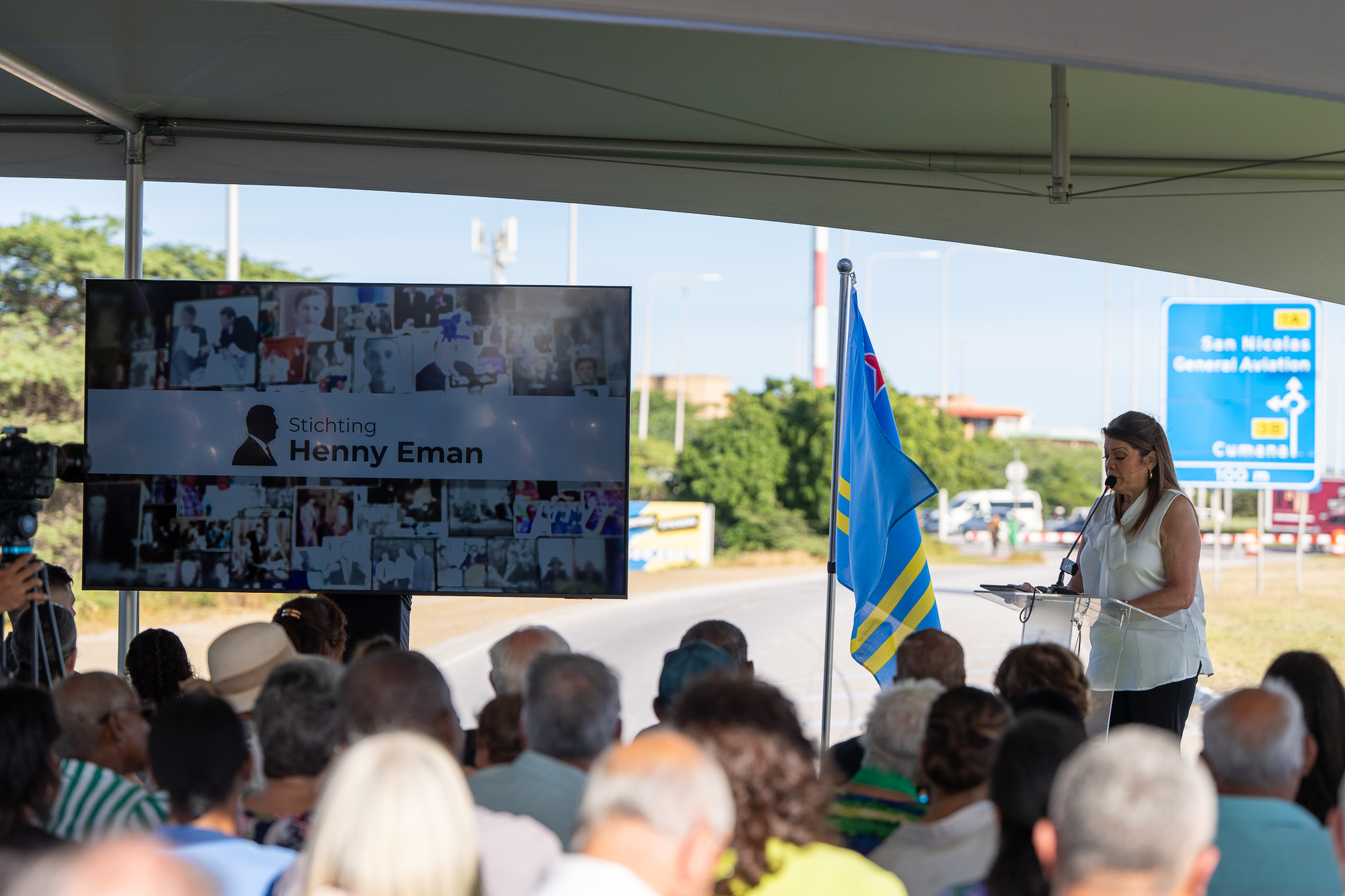 Prome Minister Eman ta sumamente honra cu Gobierno di Aruba a tuma e decision pa duna Henny Eman e reconocimento grandi aki. Palabra di gradicimento na tur cu a cana cu ne durante su carera politico. E atardi a conta cu hopi cara conoci den e circulo di Henny Eman dfm manera entre otro Alice van Romondt secretaria conseho di minister, ex-Minister Eddy Croes, ex-Minister Ike Posner, ex-Minister Tico Croes, Rolly Bislik cu a pone nomber di Aruba riba mapa deportivo internacional, un di e prome Presidente di Parlamento di Aruba Marco Christiaans y no por keda sin mencion Norman Roos cu a cana di generacion pa generacion cu e partido di AVP.