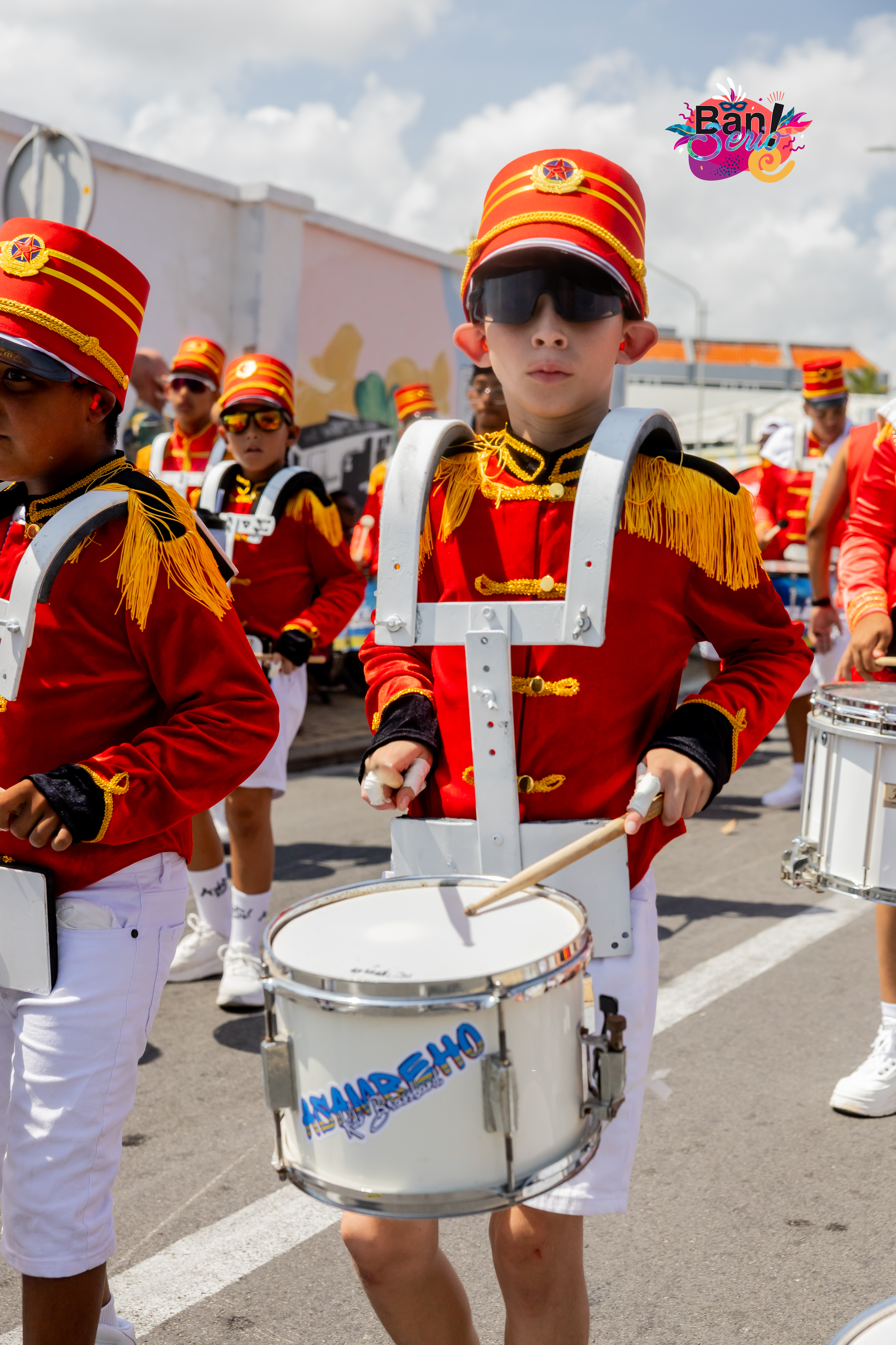 Den Oranjestad y San Nicolas, miles di mirones a disfruta di mira con nos muchanan a marcha cu orguyo, cu enfoke y cu respet pa un tradicion musical cu tin raiz profundo den nos historia. Pa hopi di nan, esaki ta e prome biaha cu nan ta participa den un evento di e magnitud aki. Un momento cu nan lo keda cune pa bida.