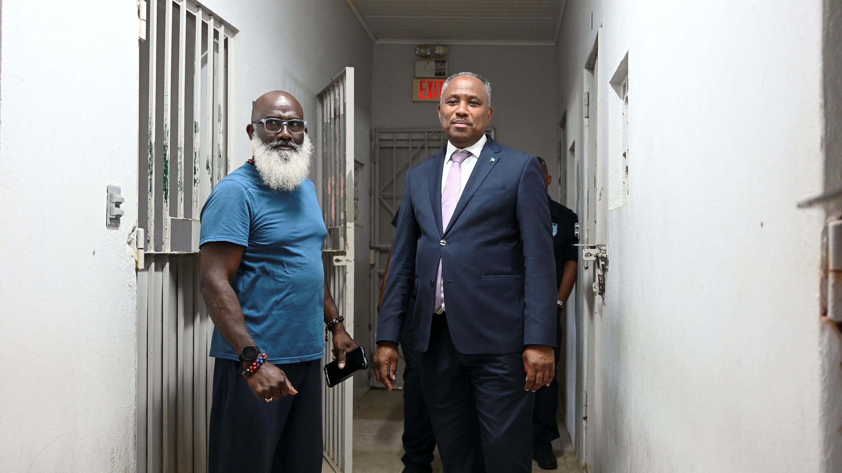 Minister di Husticia, Integracion, Transporte Publico y Energia, mr. drs. Arthur Dowers, a haci un bishita na e facilidadnan di Guarda Nos Costa na FOL y Dakota. E bishita aki ta parti di e esfuerso continuo pa mehora y modernisa e facilidadnan di detencion di personanan indocumenta cu ta pendiente nan deportacion.
