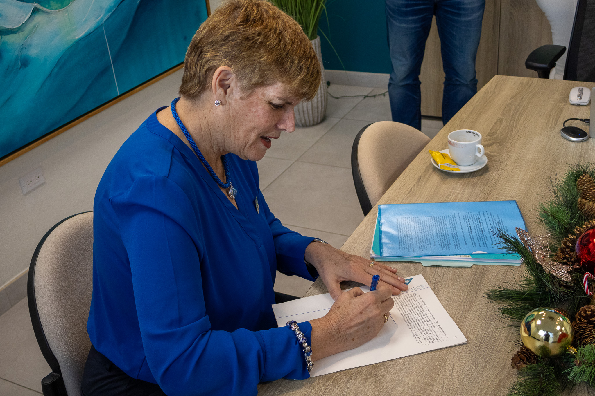 Na oficina di Notaris Helmeyer, Presidente di COA Wanda Broeksema y Secretaria-General Nicole Hoevertz a firma e acta notarial, haciendo cu COA ta conta awo cu un constitucion moderno cu ya a wordo aproba pa Comite Olimpico Internacional y cu awor ta cumpli tambe cu ley y reglamentonan vigente di Aruba.