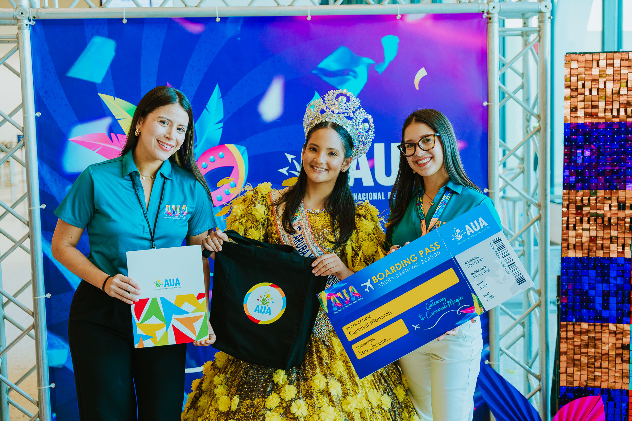 Durante e ceremonia, e monarcanan di Carnaval y demas ganadonan a ricibi tasnan di AUA hunto cu vouchernan di biahe loke ta duna nan e oportunidad di biaha pa destinacionnan cu nan ta desea di conoce, saliendo for di Aeropuerto Internacional Reina Beatrix. E destinacionnan ta inclui rutanan pa Argentina, Colombia, Peru, Merca y varios destinacion den Caribe, resaltando e conectividad creciente na Aeropuerto di Aruba.
