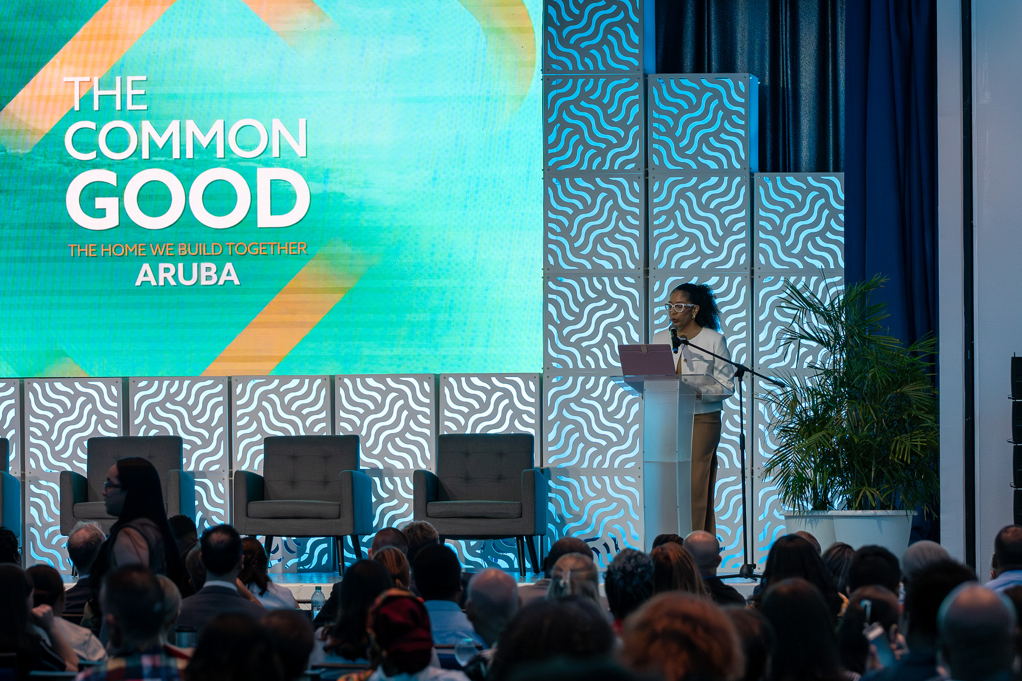 Durante e Common Good Conference, Esther Emerencia-Gomes, directora di POST Aruba NV y miembro activo di Kiwanis Club of San Nicolas, a comparti un testimonio personal y cultural riba con ta biba e bon comun den bida diario riba Aruba.