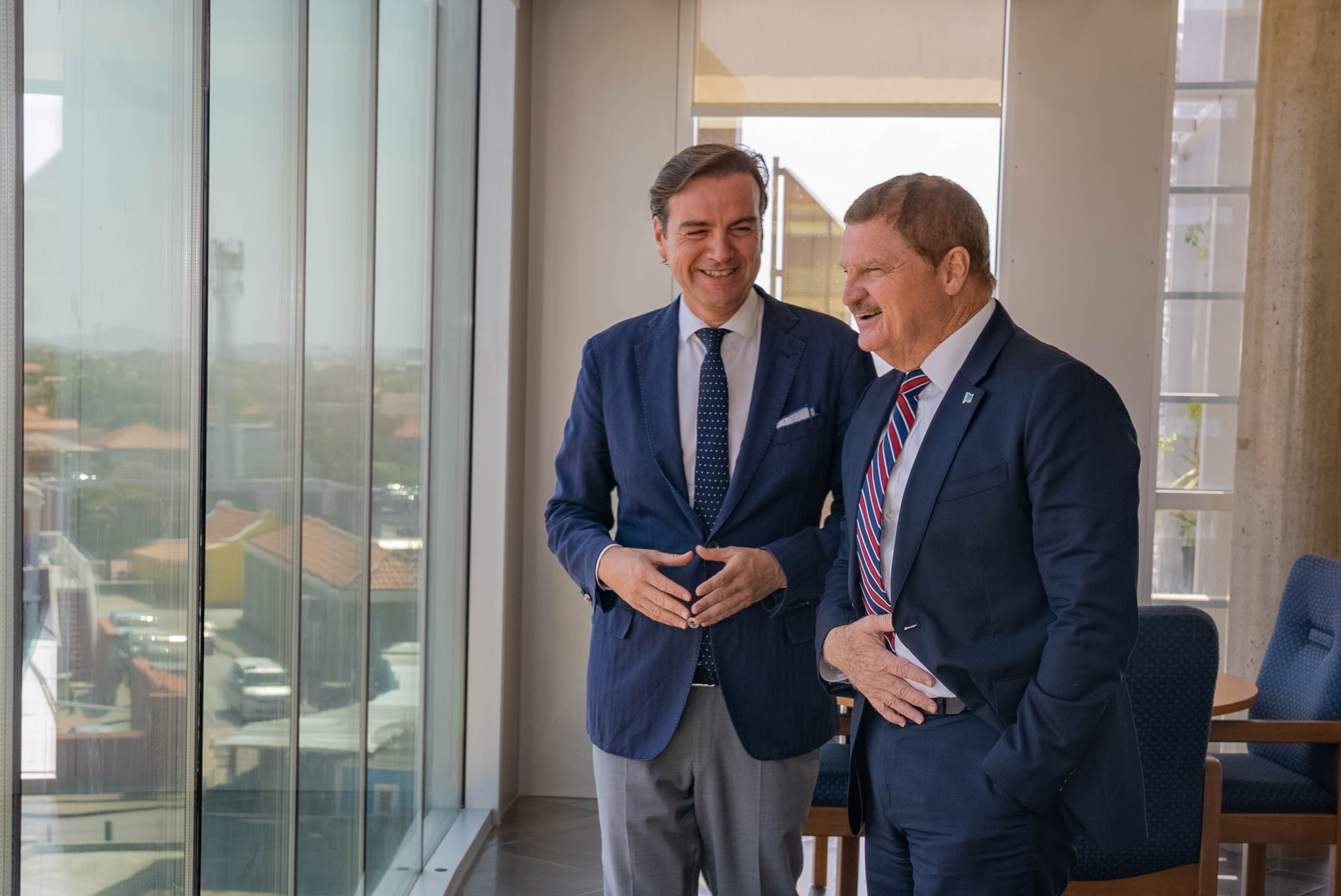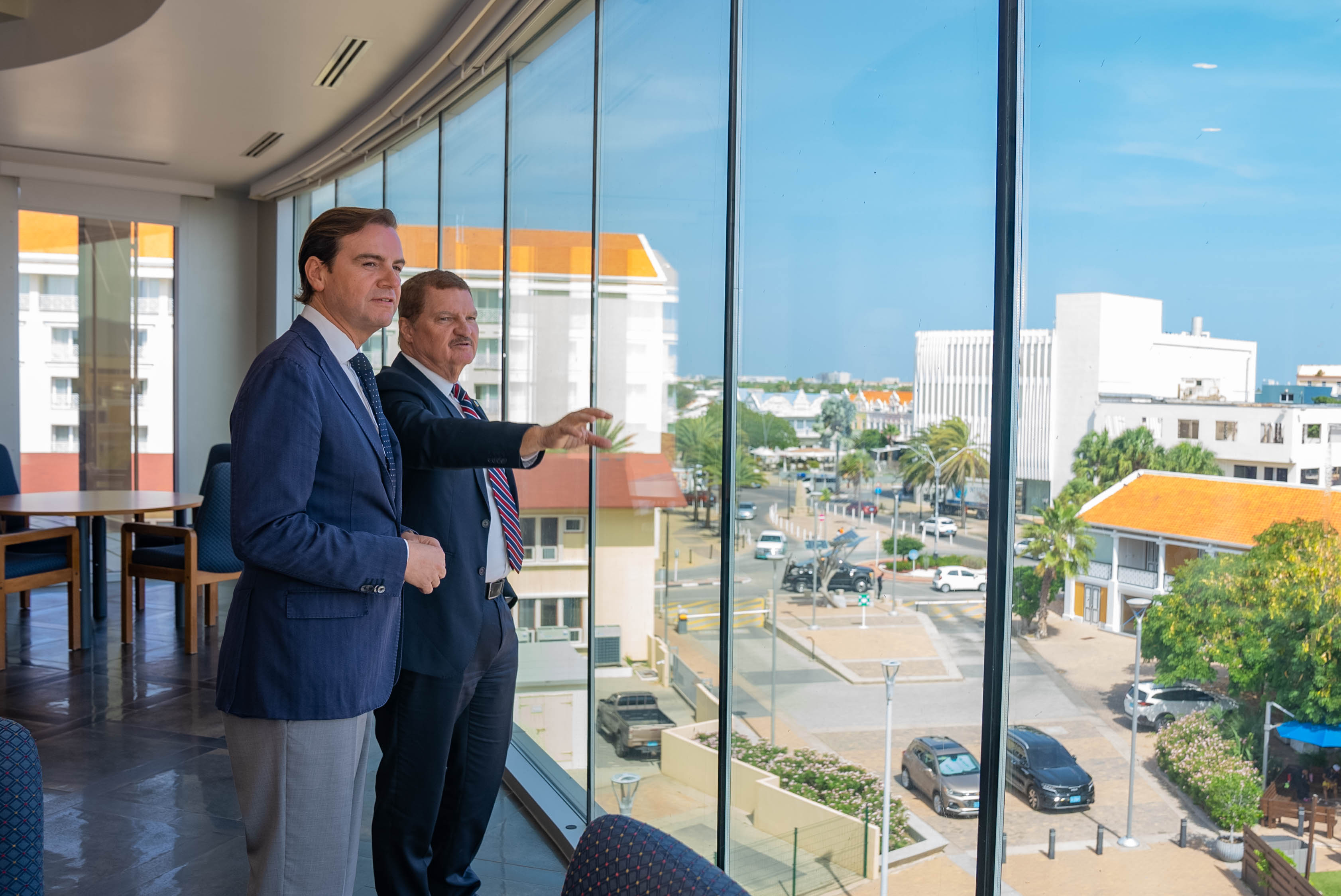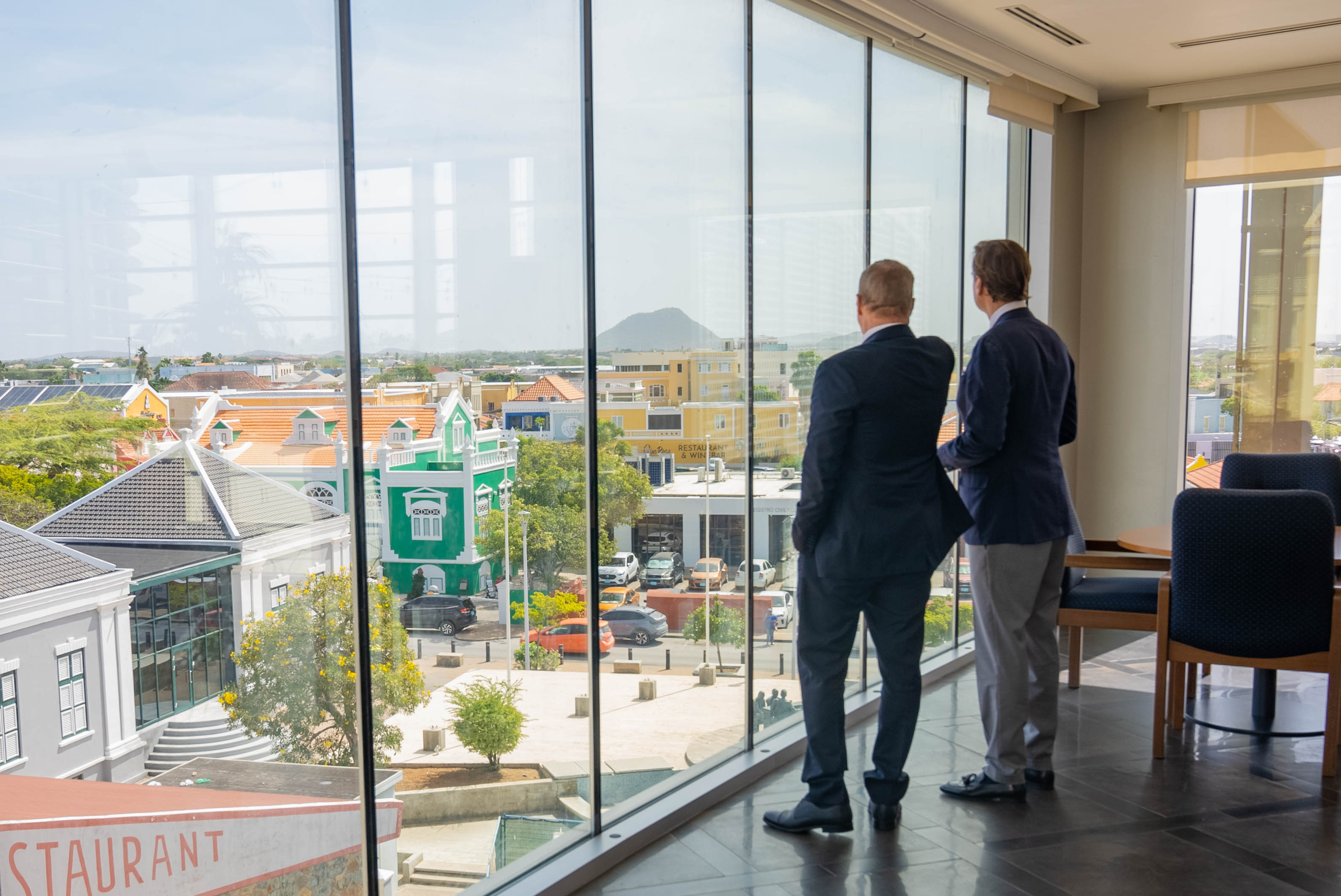 Awe mainta, Prome Minister Mike Eman hunto cu Minister Gerlien Croes a ricibi na Bestuurskantoor Malik Azmani, miembro Hulandes di Parlamento Europeo y representante di e partido liberal VVD, cu ta forma parti di grupo politico Renew Europe.