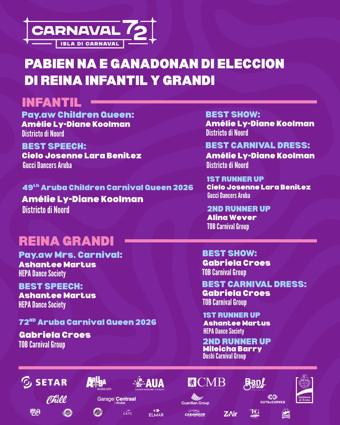 Ganadonan di eleccion di Reina Hubenil y Sra. Carnaval