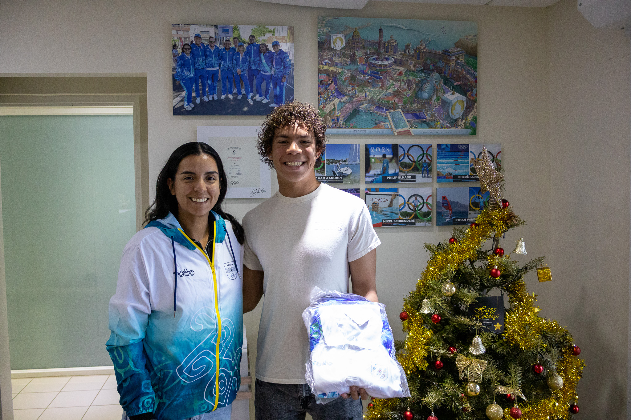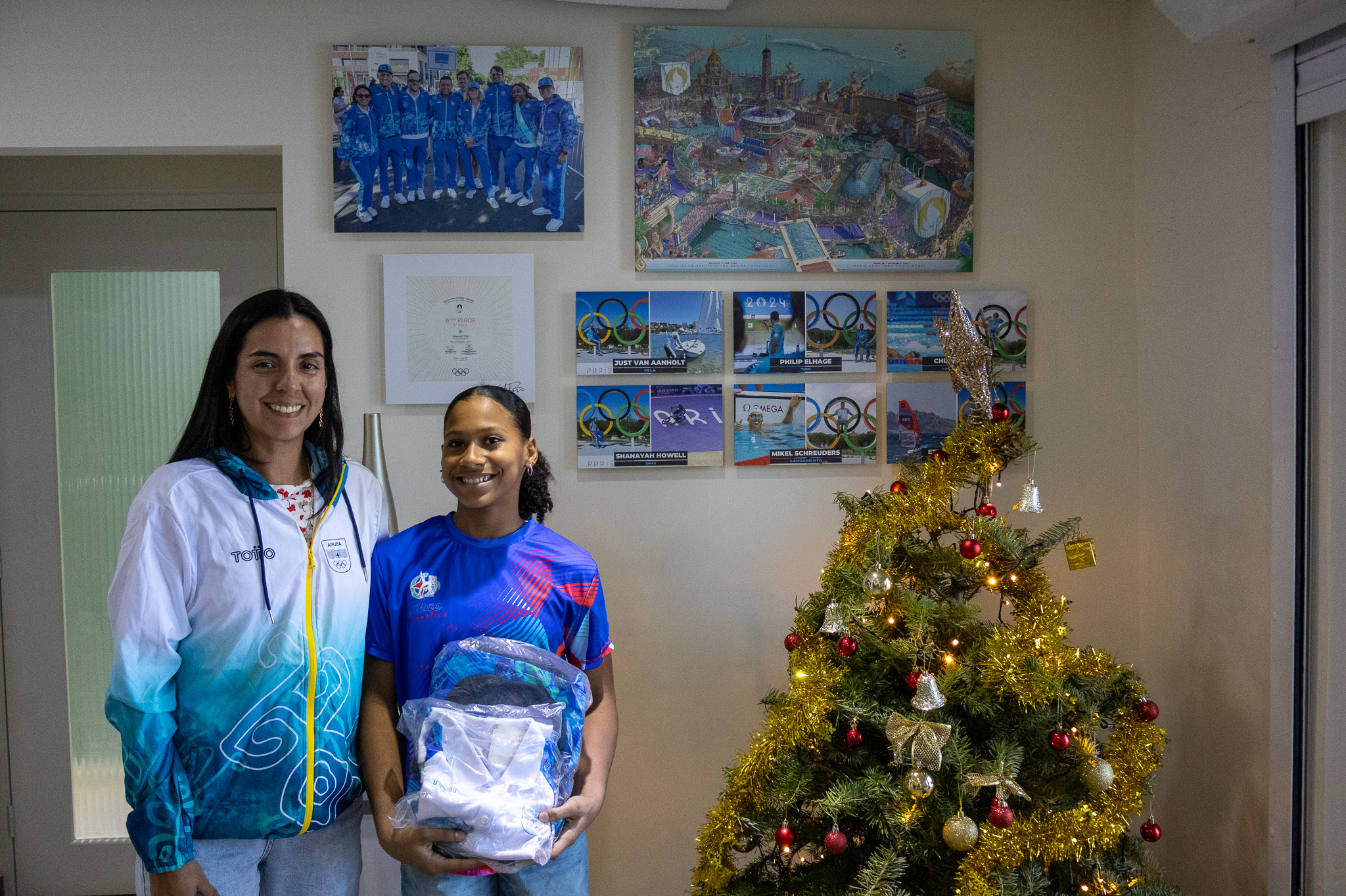 Di drenta piscina pa landa cu su ruman como mucha te yega Weganan Olimpico Paris2024