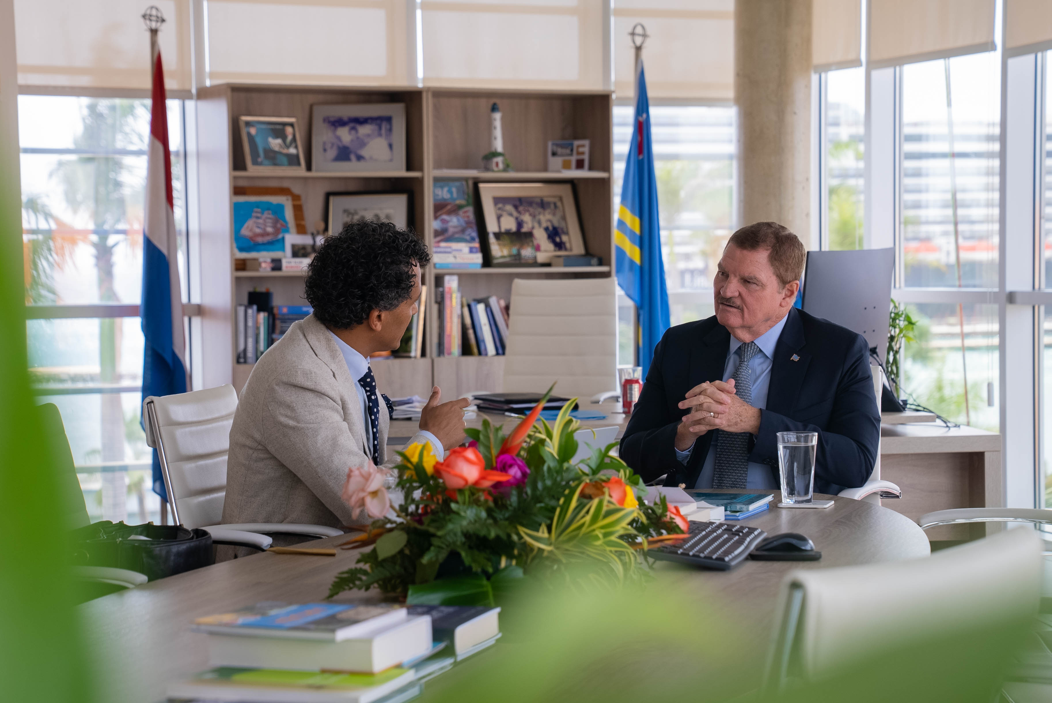 Awe mainta na Bestuurskantoor, Prome Minister Mike Eman a ricibi señor Jalken Antonia pa continua combersacion, tras un prome encuentro cu a tuma luga anteriormente.