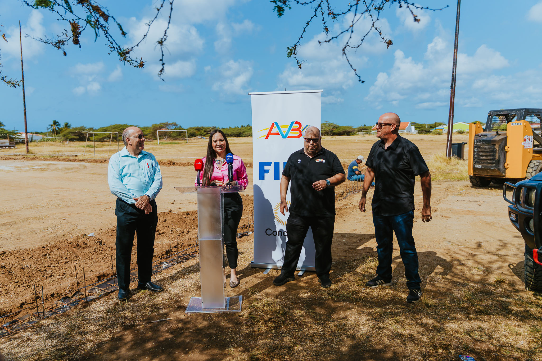 Minister di Deporte, mr. Gerlien Croes, a confirma e comienso di e construccion den presencia di representantenan di e sector deportivo, incluyendo e federacion nacional di futbol (AVB), Lotto pa Deporte y partnernan cu ta contribui activamente na realisacion di e proyecto.