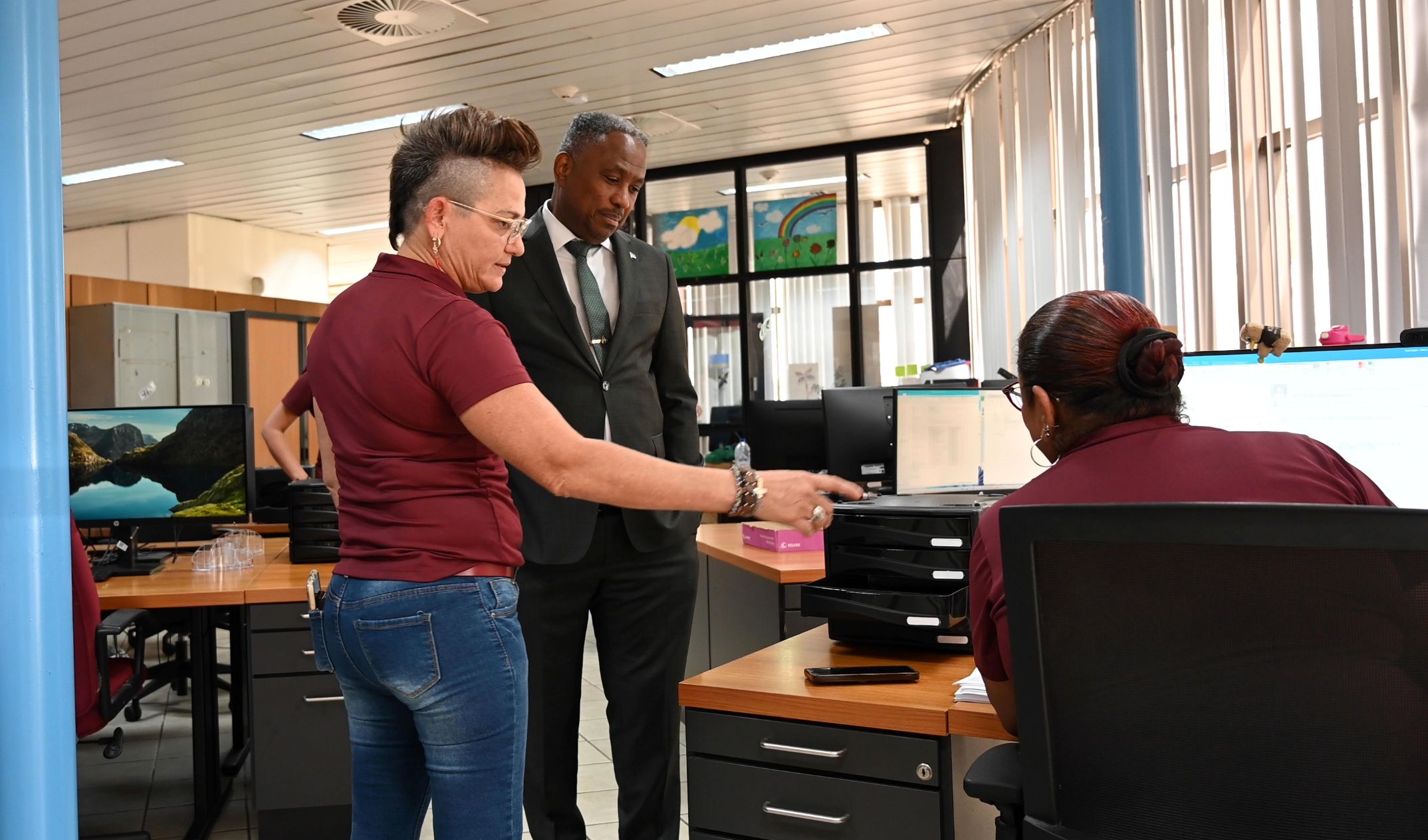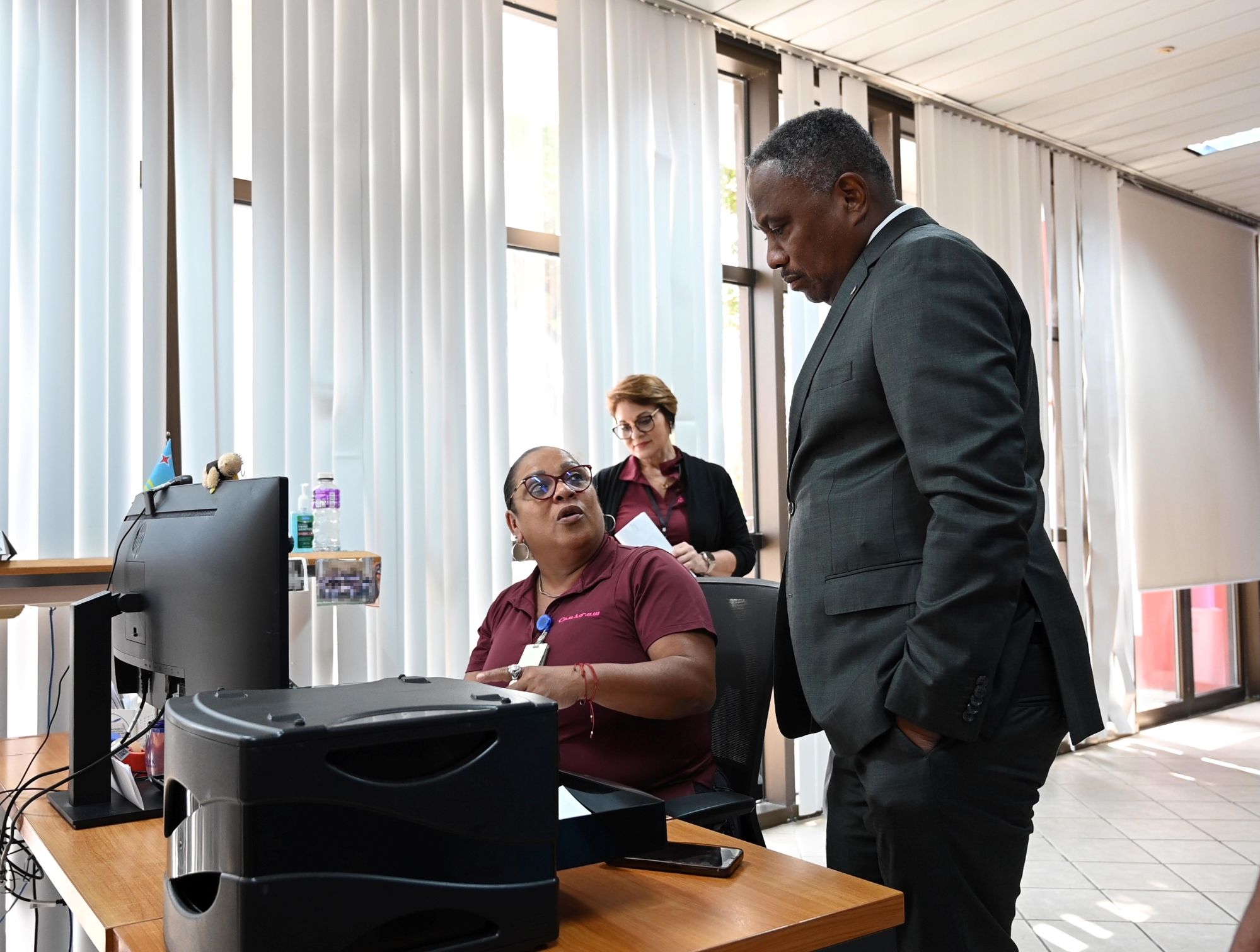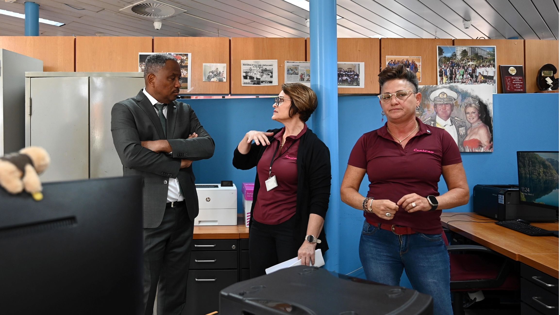 Den combersacion cu trahadonan di Censo, Minister Dowers a haya un bista real di e cantidad di trabao y e retonan cu tin debi na e aumento di cliente di e ultimo tempo. Ademas minister a scucha e preocupacionnan di e personal y a reconoce e esfuerso continuo cu nan ta haci pa atende comunidad di manera profesional.