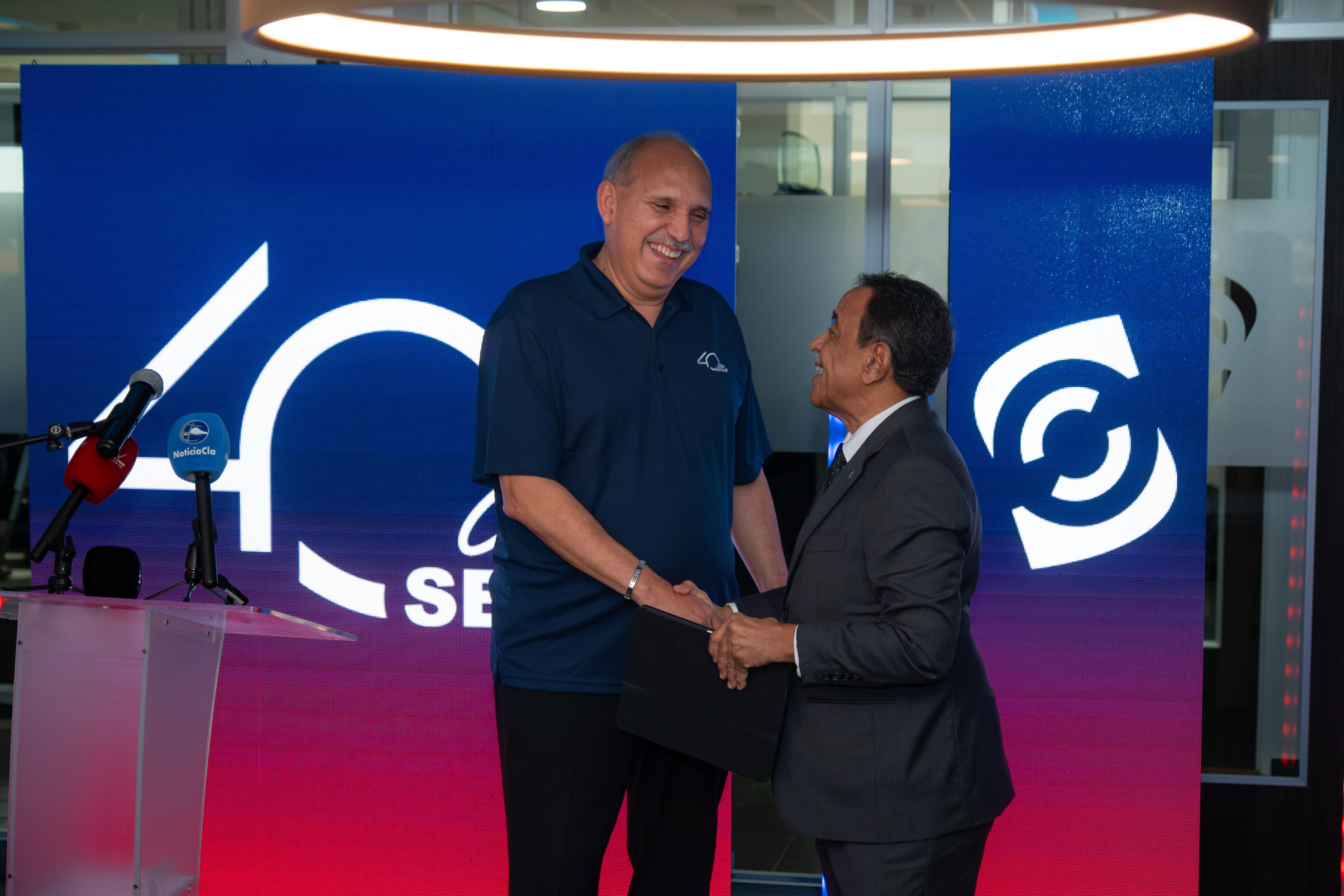 Minister di Telecomunicacion, drs. Rene Herdé tawata tin e honor di ta presente pa celebra 40 aniversario di SETAR. E celebracion aki ta marca 4 decada di servicio, inovacion y compromiso pa conecta comunidad di Aruba.
