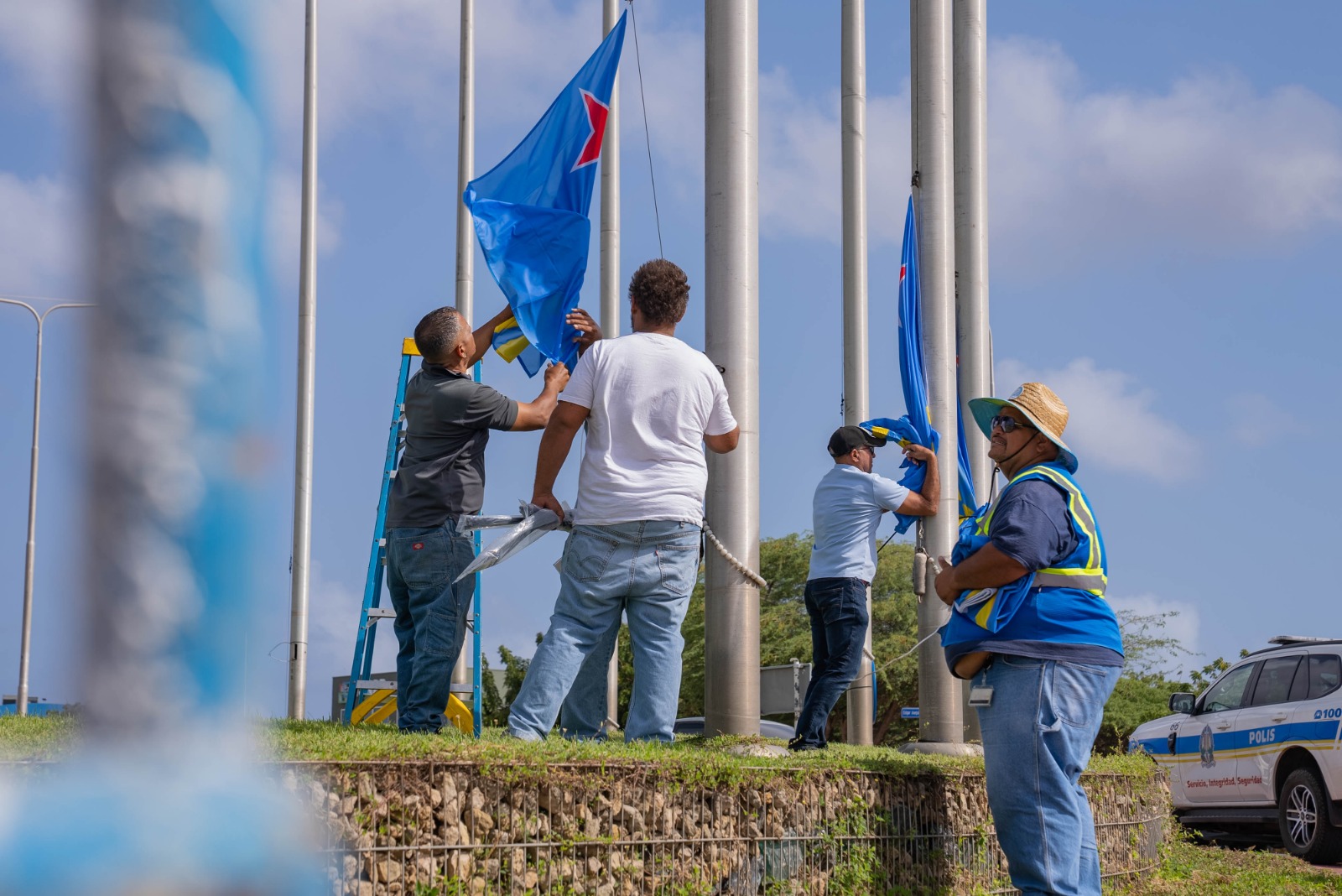 - E bandera mester ta hisa te na top di e palo di bandera;