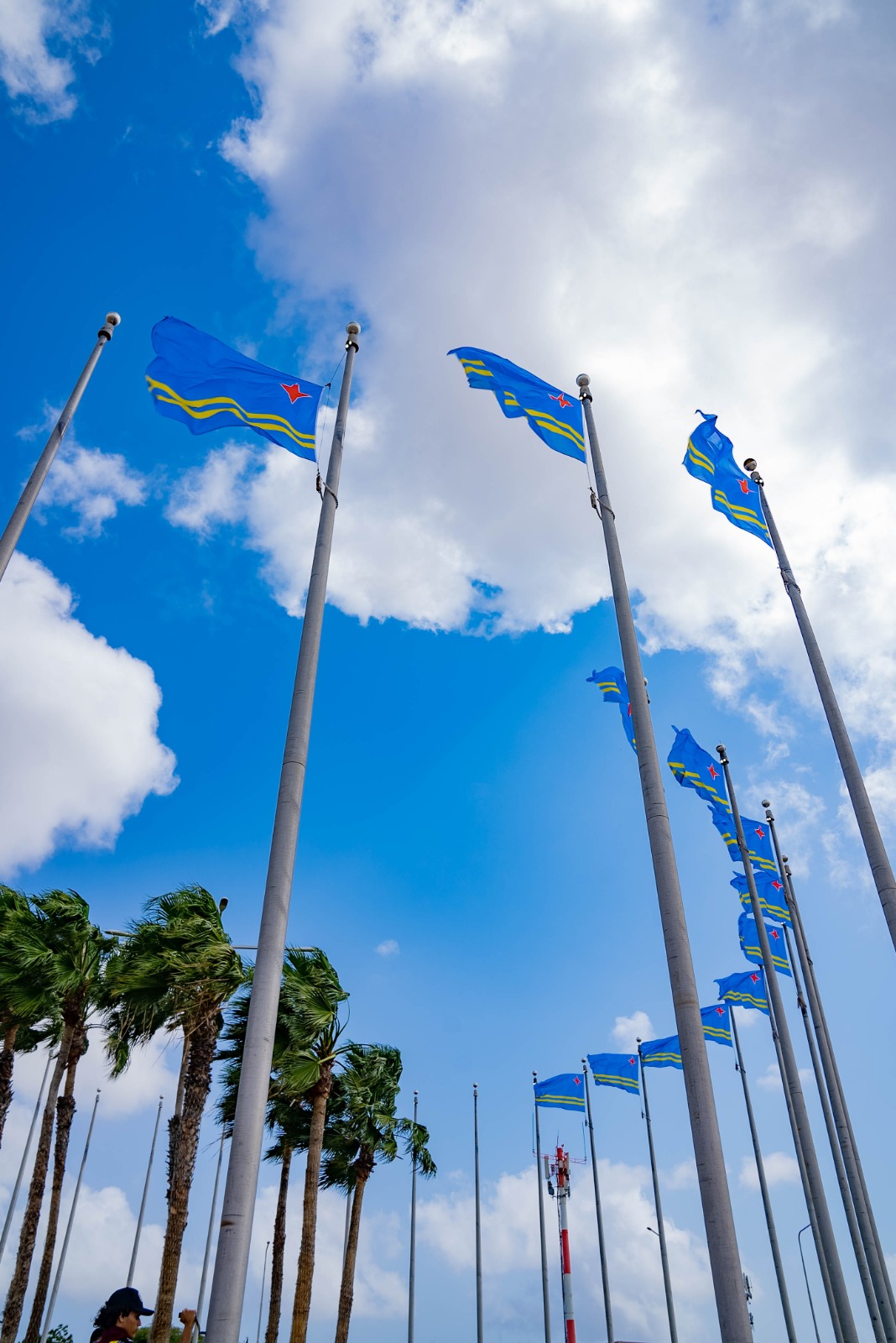 Parlamento di Aruba a aproba e diseño riba 16 di maart 1976 cu a bira e bandera oficial di Aruba. Esaki a keda inaugura riba 18 di maart 1976. Pa prome biaha a hisa e bandera y a toca e cantica “Aruba Dushi Tera” como nos himno nacional di Aruba durante un celebracion grandi den Wilhelmina Stadion, na Dakota. Awe Compleho Deportivo Guillermo Prospero Trinidad.