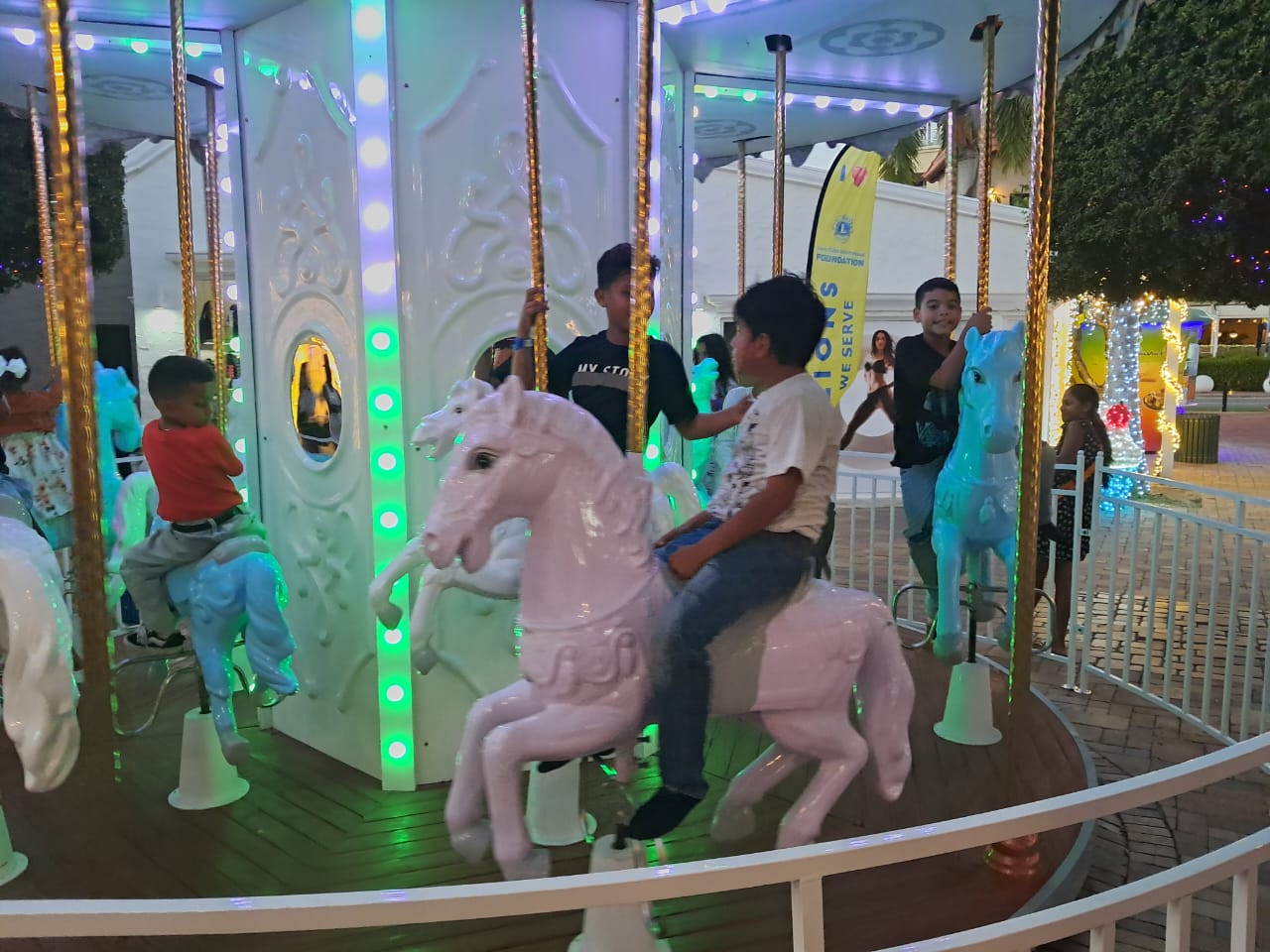 E muchanan a disfruta di un atardi magico yen di diversion, cu atraccionnan manera Dino Jump, Carrousel, paseo den Trein, un bunita Christmas Water Show, y naturalmente, un bishita special di Santa Claus, cu a hiba sonrisa y alegria na tur hende presente.