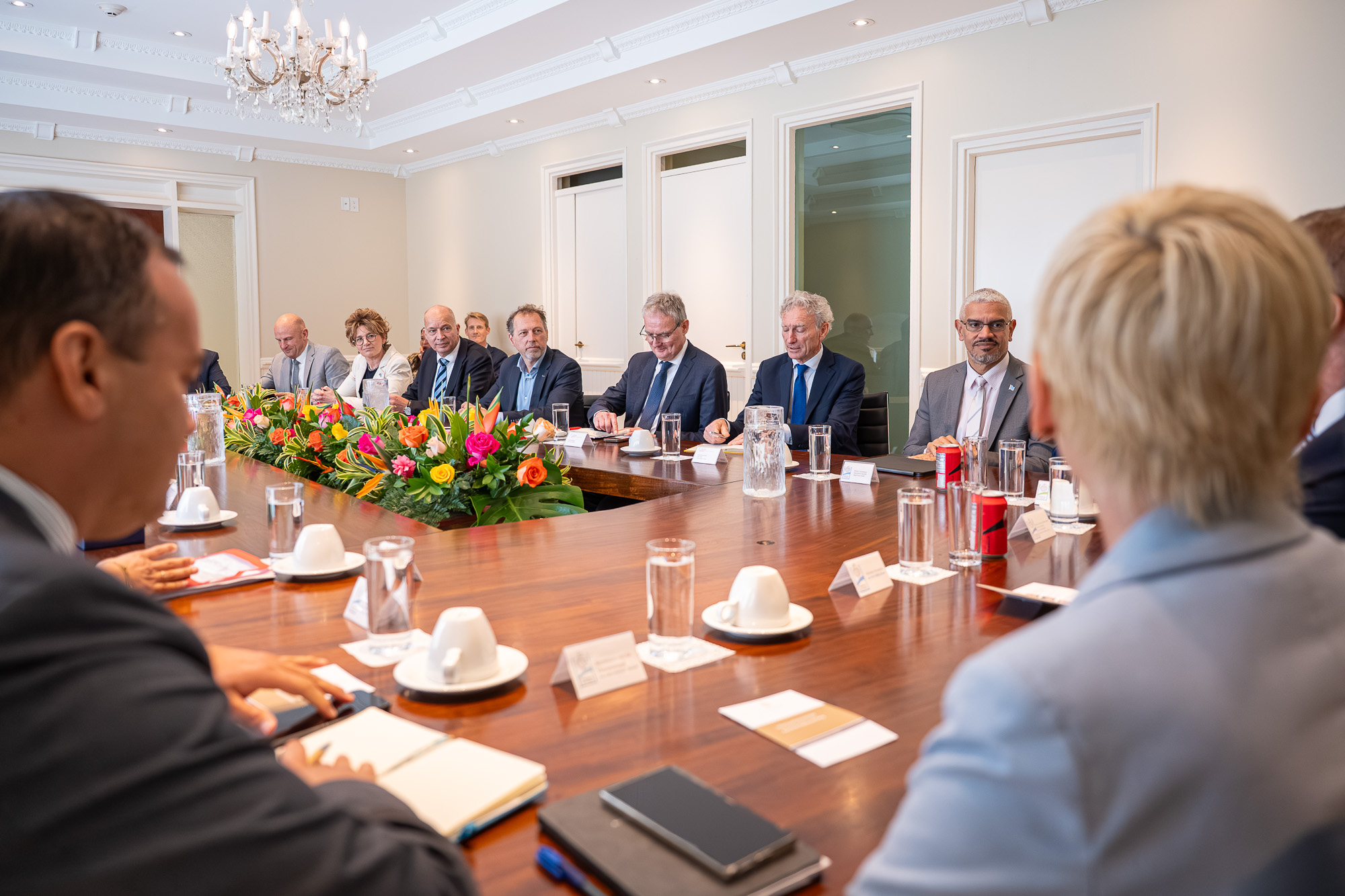 Paul Rosenmöller, miembro di e Eerste Kamer y ex-lider politico cu un larga trayectoria den movemento sindical y politica nacional, a expresa cu e tabata agradablemente sorprendi pa e ‘openheid’ di gabinete di Aruba riba tanto desafio como logro.