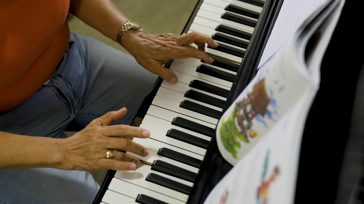 Porta di Harmonia no ta solamente atrae nos muchanan y hobennan, pero ta atrae tambe personanan di tur edad. Un ehempel ta Lucia Ridderstad, di 65 aña di edad. Lucia ta un studiante cu ta tuma les di piano y les di violin. Lucia ta un ehempel bibo di cuanto musica por transforma bida. Pa Lucia, musica no ta solamente nota y technica, pero un manera pa sinti e curason y compronde harmonia den bida.