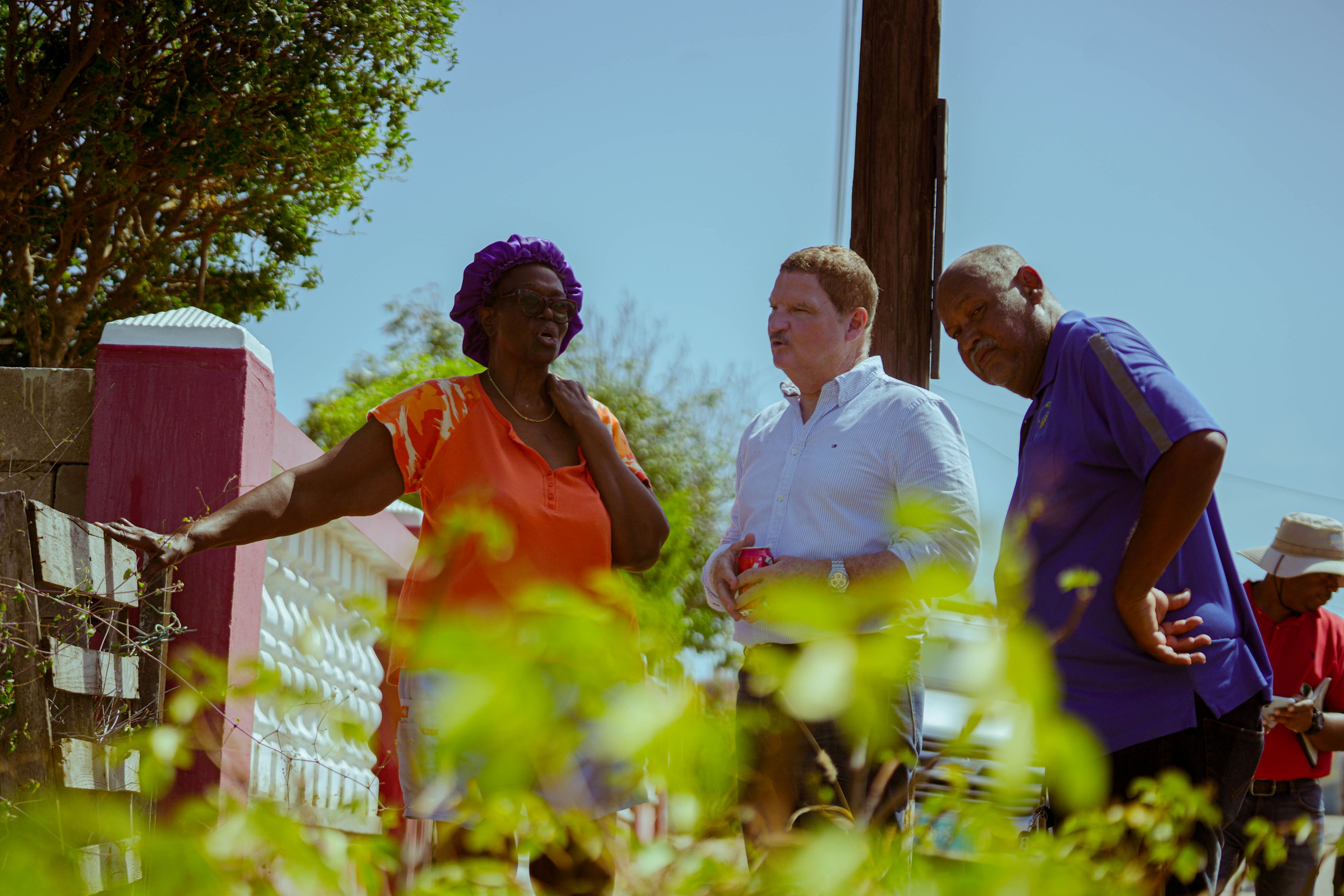 Diahuebs mainta Prome Minister Mike Eman a bishita e bario di Esso Heights como parti di e iniciativa Accion di Bario, un proyecto cu a cuminsa na 2009 bou di “Bo Bario” y cu awo ta continua bou di Gabinete AVP-Futuro.
