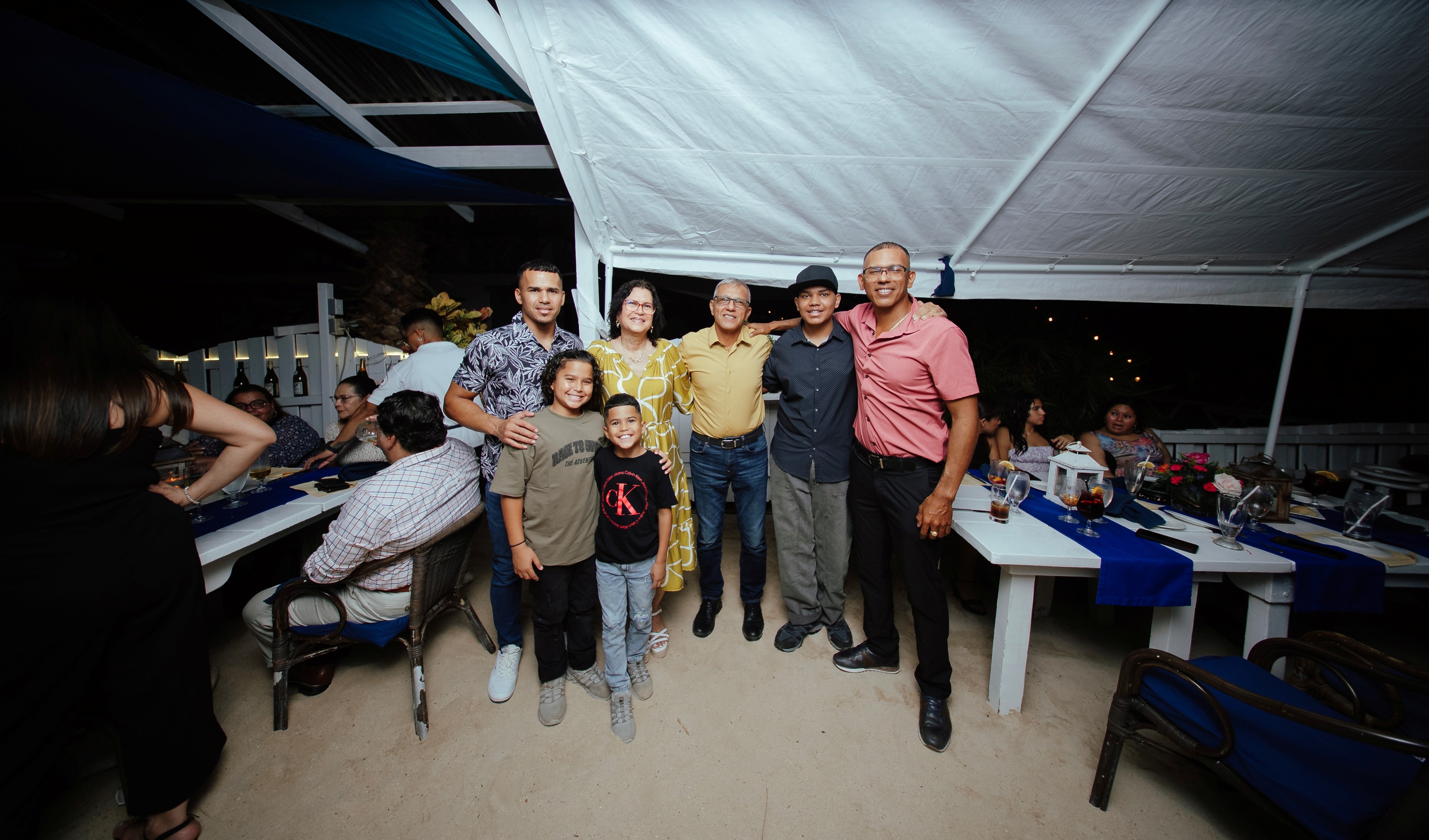 Siman pasa, hopi colega di Aruba Bank, hunto cu famia y amigonan cerca di Sandy Geerman, a reuni pa un motibo special: pa celebra Sandy.